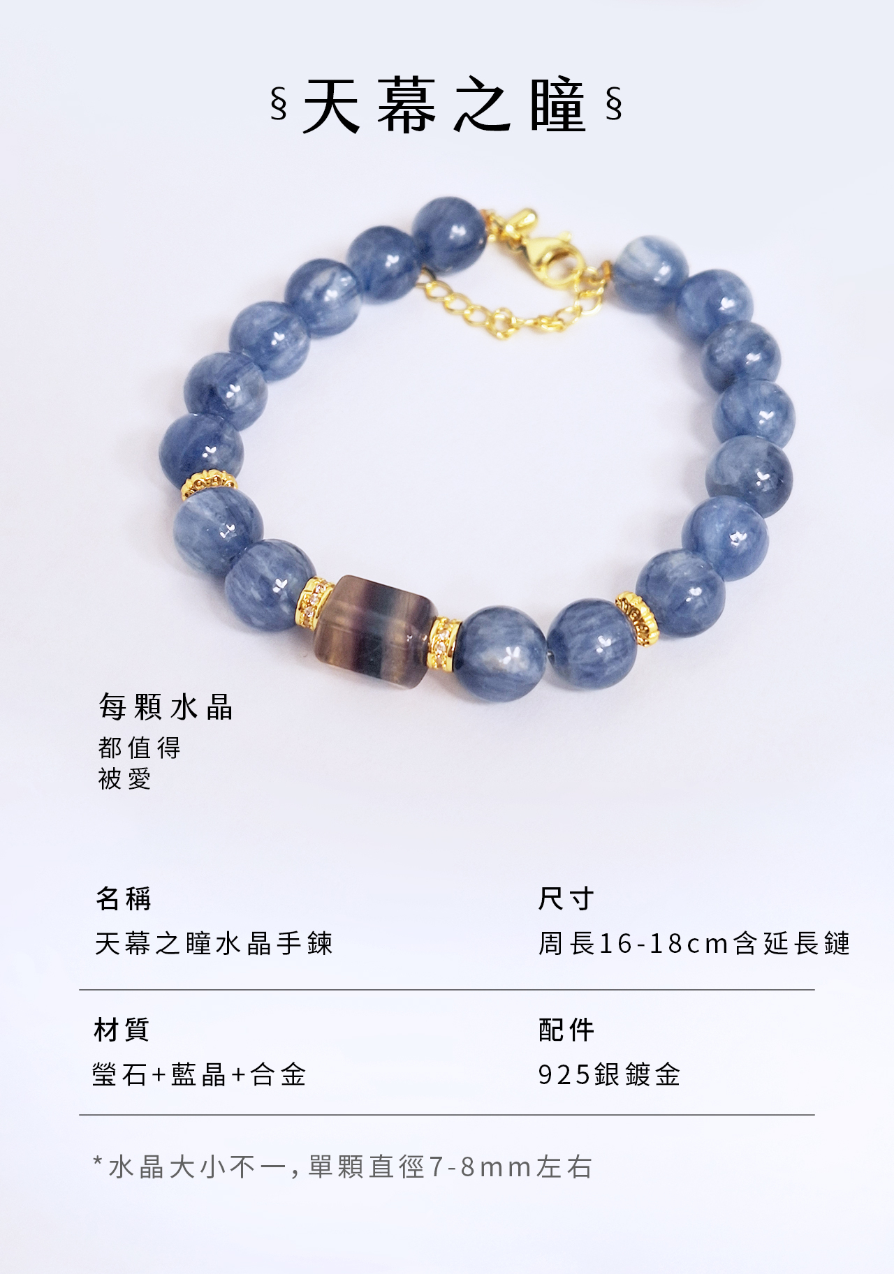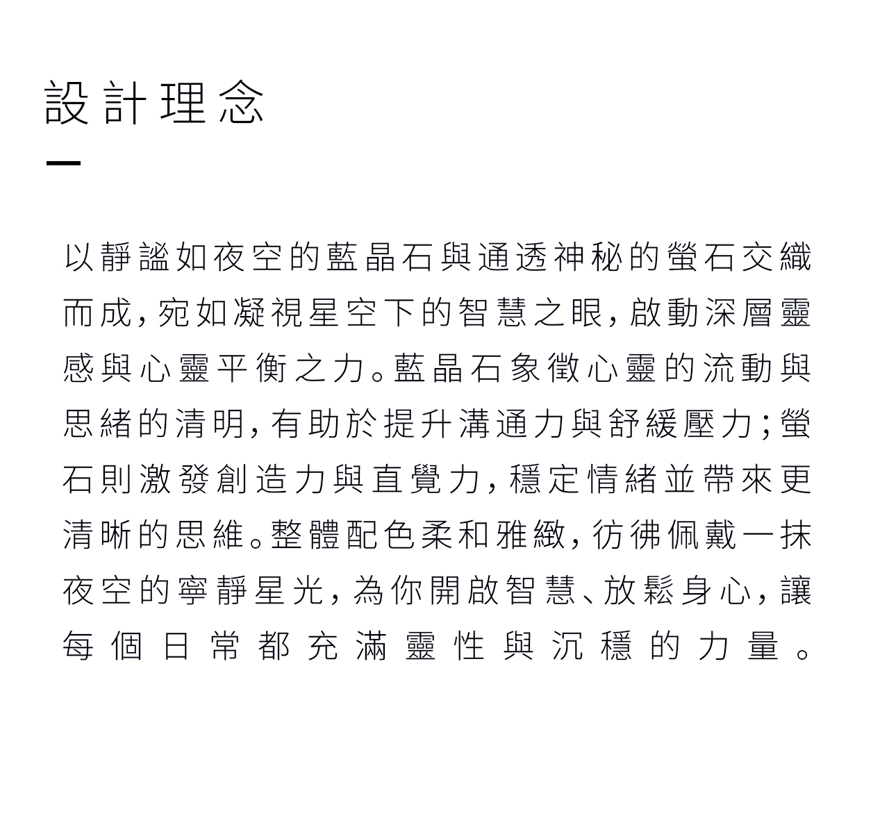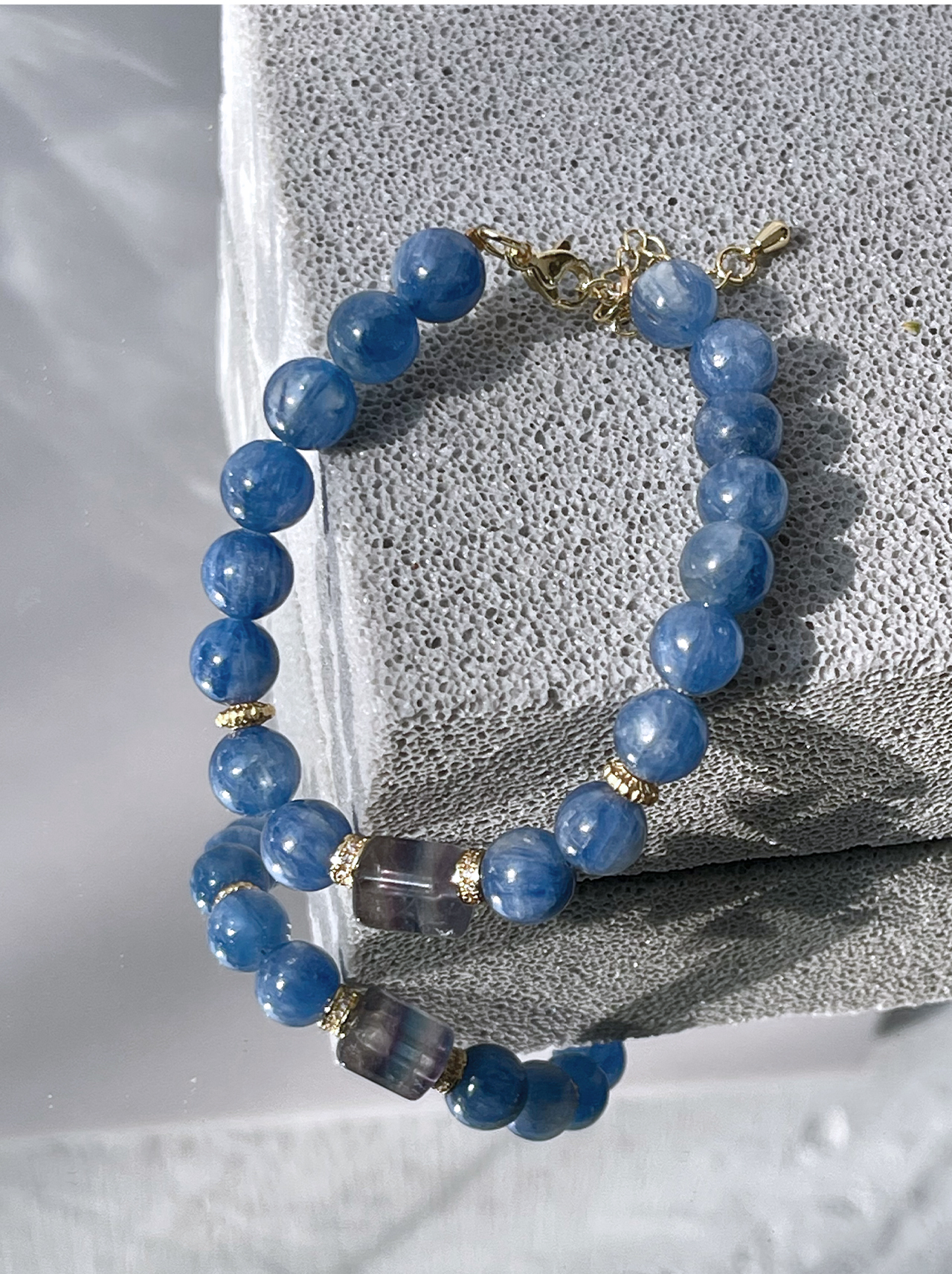 以靜謐如夜空的藍晶石與通透神秘的螢石交織而成